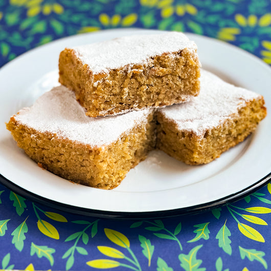 Blondies, the lighter cousins of brownies – are frequently far too sweet and heavy. Bananas to the rescue! Ripe bananas, sesame paste and natural vanilla extract make this delicious snacking cake fragrant and fudgy without relying on boatloads of sugar or butter.